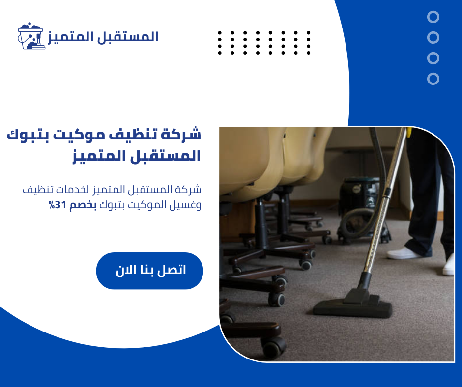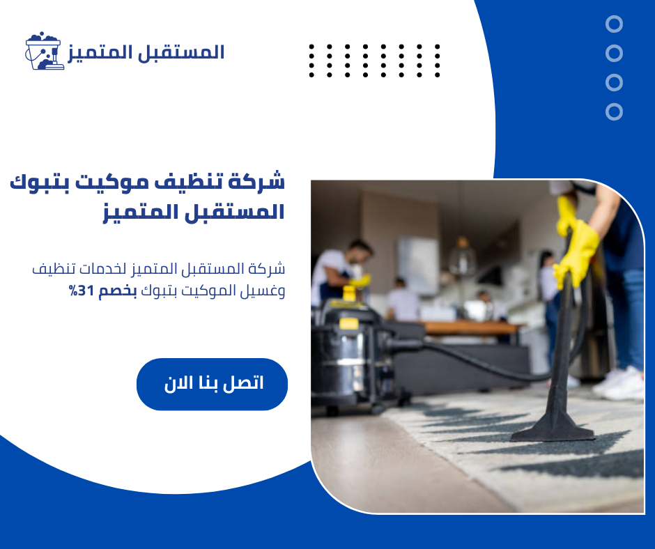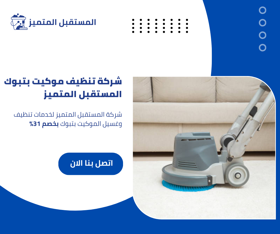 ما يميزنا في شركة تنظيف موكيت بتبوك هو الاعتماد على فريق مدرب ومحترف يتمتع بالخبرة الواسعة في مجال تنظيف الموكيت. فنحن نستخدم أحدث التقنيات والمعدات لضمان إزالة البقع والأوساخ بشكل فعال دون التسبب في أي ضرر للموكيت. كما نهتم بتوفير خدمة عملاء ممتازة تضمن رضاكم التام وتلبية جميع احتياجاتكم. لا تترددوا في الاعتماد على شركة تنظيف موكيت بتبوك شركة المستقبل المتميز الرائدة في مجال التنظيف لتحقيق أعلى مستويات النظافة والجمال في منزلكم. اتصل بنا اليوم للحصول على خدمات تنظيف موكيت بتبوك متميزة تضمن لكم بيئة داخلية نظيفة ومنعشة.